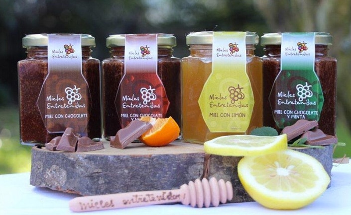 Entre sus mieles con sabores se encuentran: chocolate – chocolate; menta – chocolate naranja; merkén, lavanda, avellana, canela, nueces, plátano, frambuesa.