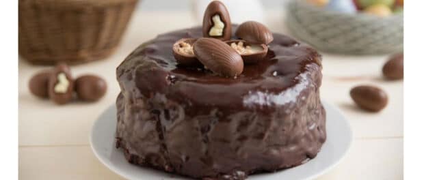 – Baña el queque con la ganache y decora con huevitos de chocolate o confites.