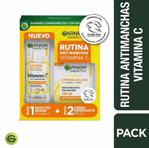 Rutina Anti-Manchas Express Aclara formulada con Vitamina C y extracto de limón.