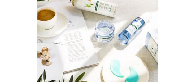 La línea facial al agua de Aciano Orgánico de Klorane se compone de un Agua Micelar limpiadora, un Desmaquillante Waterprooof de ojos, un Sérum Wake Up Call, un Gel-Crema de uso diario y una Crema de noche que, además, se puede utilizar como mascarilla nocturna.